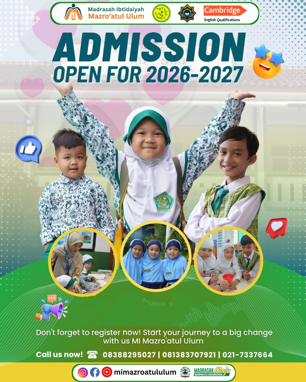 ✨MI MAZRO'ATUL ULUM✨ telah membuka Penerimaan Siswa Baru Tahun Ajaran 2026/2027